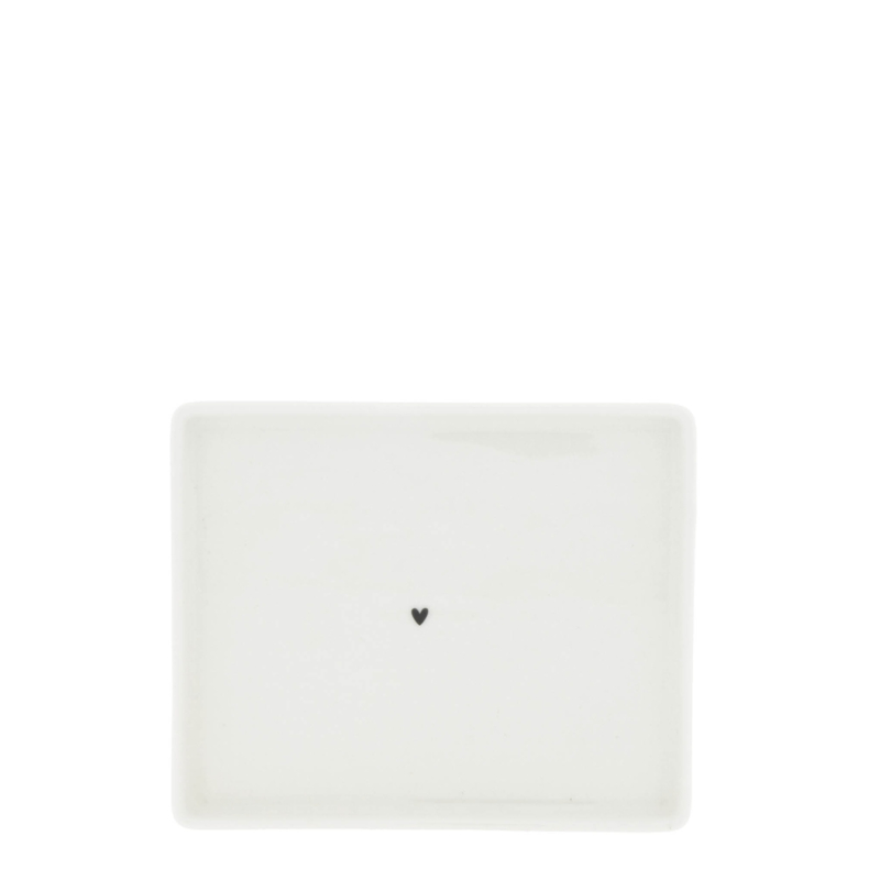 Botervloot met zwart reliëf hartje en tekst 'BUTTER', het schoteltje is voorzien van een zwart hartje in het midden.