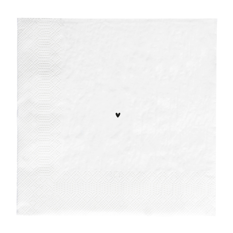 Set van 20 te leuke witte papieren servetten met een geweldig leuke aquarel haas, de achterzijde is voorzien van een zwart hartje.